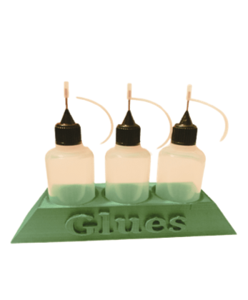 Glue bottle stand with inserts to hold 3 x 30ml fine tipped glue bottles.