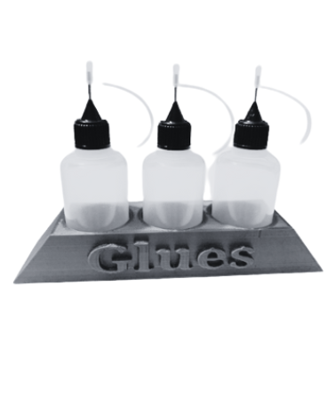 Glue bottle stand with inserts to hold 3 x 30ml fine tipped glue bottles.